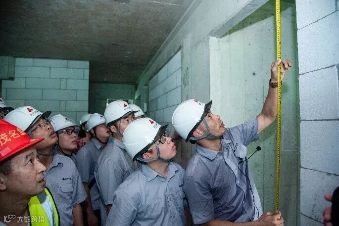 实测实量是精准管理的重要环节,日常实测实量主要由实测监理完成现场测量并将数据上传至工程质量系统。本环节设计旨在加深不同专业线同事对实测实量的理解,加强对总包实测实量管理。本环节先由梁炳柱就主体结构阶段、砌筑阶段、抹灰阶段分别进行现场教学,分解各个阶段实测实量主要要点、注意事项及如何做好实测实量。接着由不同专业线的同事组成4个比拼小组进行内抹灰阶段技能比拼,加深大家对实测实量的实操体验。