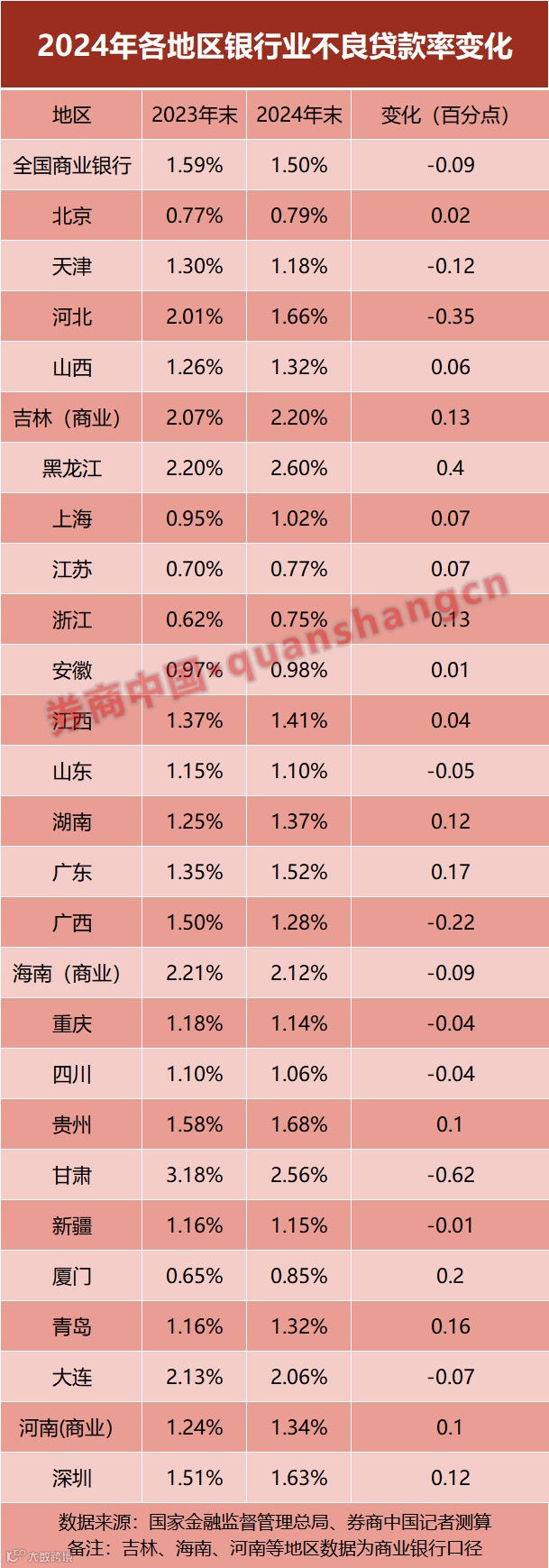 2024年末,全国多数区域银行业总体仍保持资产质量稳健,但具体数据呈现普遍波动。