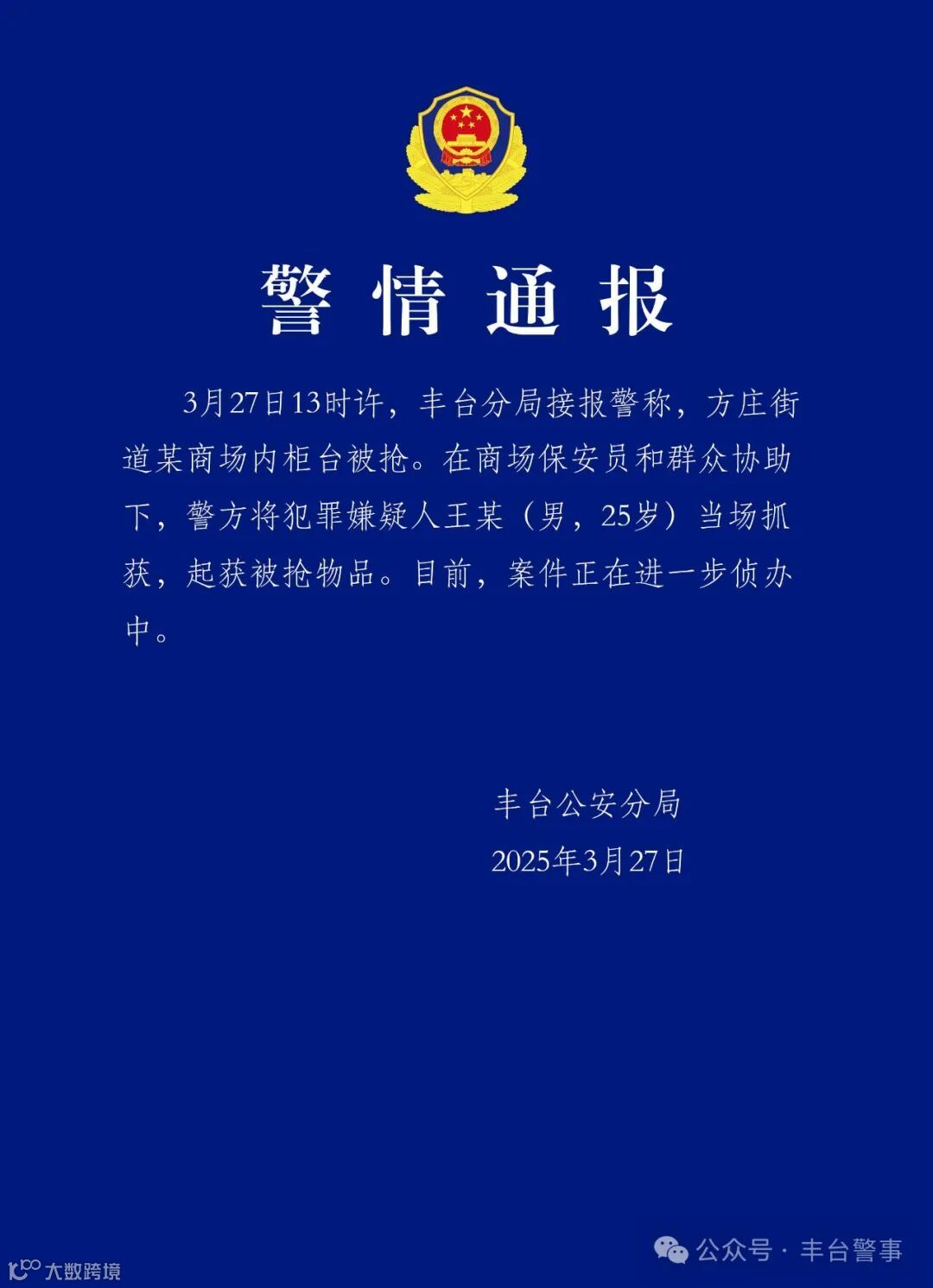27日,北京丰台公安分局发布一则警情通报,内容如下: