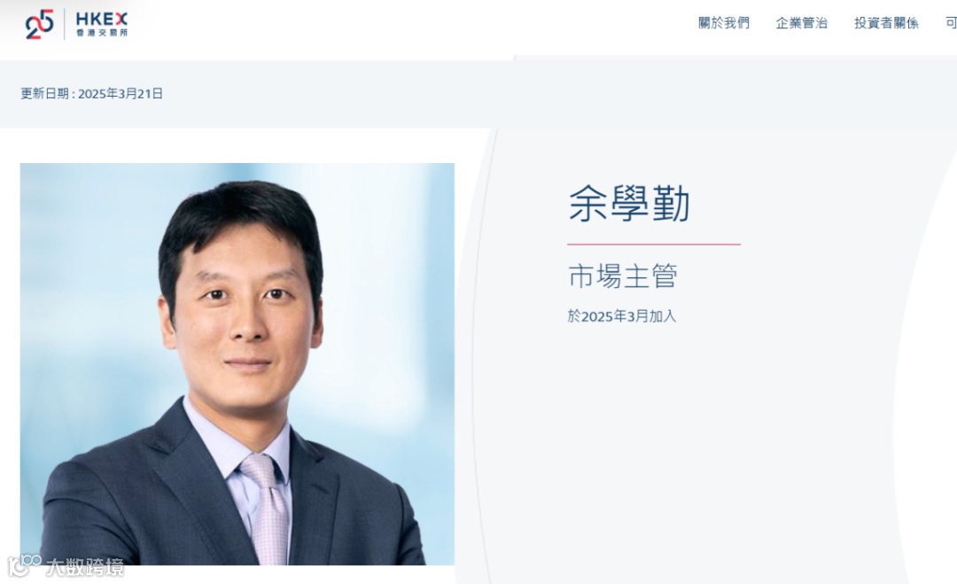 事实上,早在今年1月,港交所就曾宣布委任余学勤为公司董事总经理及市场主管。