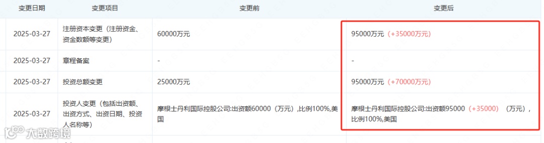 企查查显示,外资公募摩根士丹利基金管理(中国)有限公司近期完成了工商变更,注册资本从6亿元人民币增加至9.5亿元人民币,增幅达到58%。此次增资完成后,公司注册资本达到9.5亿元人民币,由摩根士丹利国际控股公司全资持股。