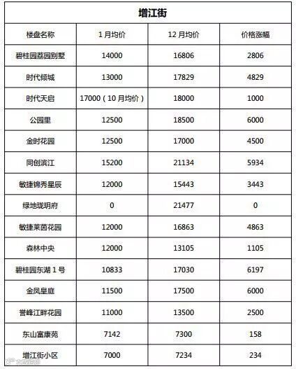 这让居住在增江街的朋友兴奋不已,小编统计了增江街15个项目2017年的价格涨幅,最高涨幅将近6200元/平。