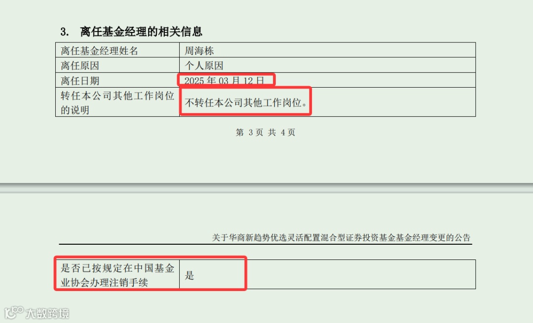 今日午后,华商基金发布7条公告,其中有6条是周海栋旗下的6只基金变更基金经理公告。周海栋因个人原因卸任华商新趋势优选等基金的基金经理。卸任基金经理后,周海栋不转任华商基金其他工作岗位,且已按规定在中国基金业协会办理注销手续。券商中国记者12日从业内确认了周海栋离职消息。
