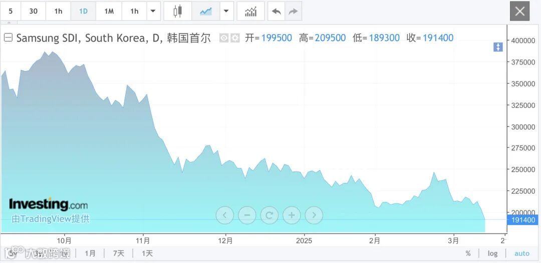 当地时间3月14日,韩国股市开盘后,三星SDI股价突然跳水,盘中一度大跌超7%,截至收盘,跌幅达6.18%,股价创下五年来最低价,2025年年内累计跌幅扩大至29.3%。