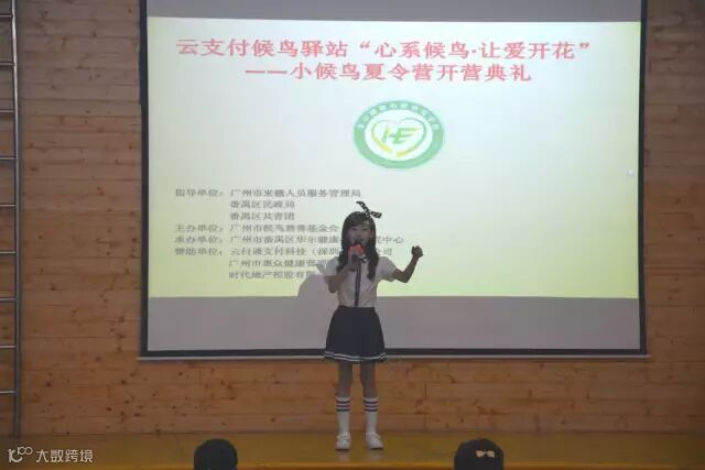 当天上午9点30分,小候鸟夏令营开营典礼准时开始,“小候鸟”们整齐的坐在台下,与爱心企业共同分享这一激动人心的时刻。