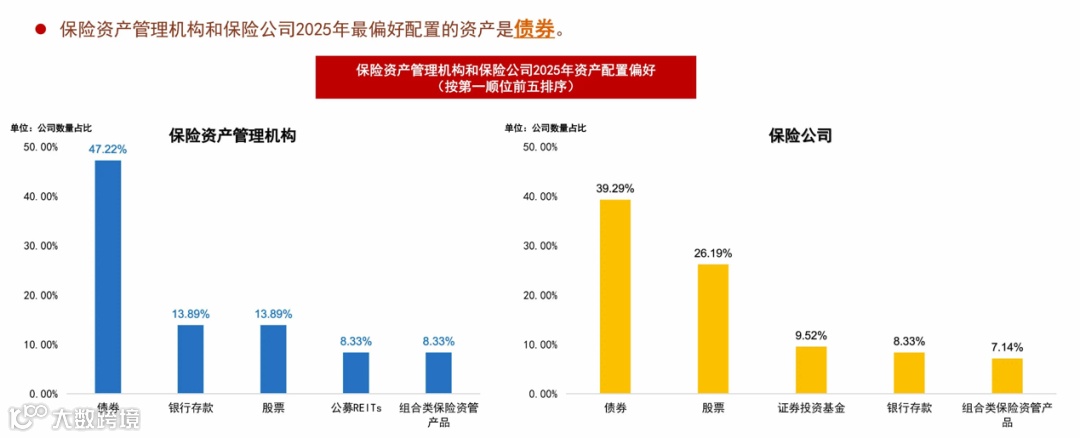 在资产配置偏好上,调查结果显示,债券仍然是我国保险机构2025年首选的投资资产,其次是股票和银行存款。