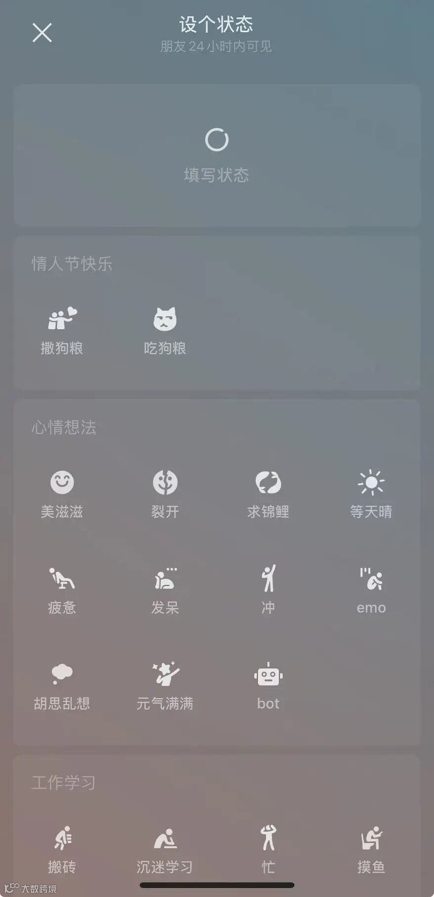 同时,微信今天还同步上线了两个限定状态,分别是“撒狗粮”和“吃狗粮”,这也是三个节日中必备的“保留节目”。