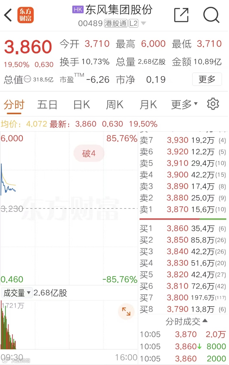港股东风集团股份盘中更是一度涨近86%,目前涨幅收窄至约20%。
