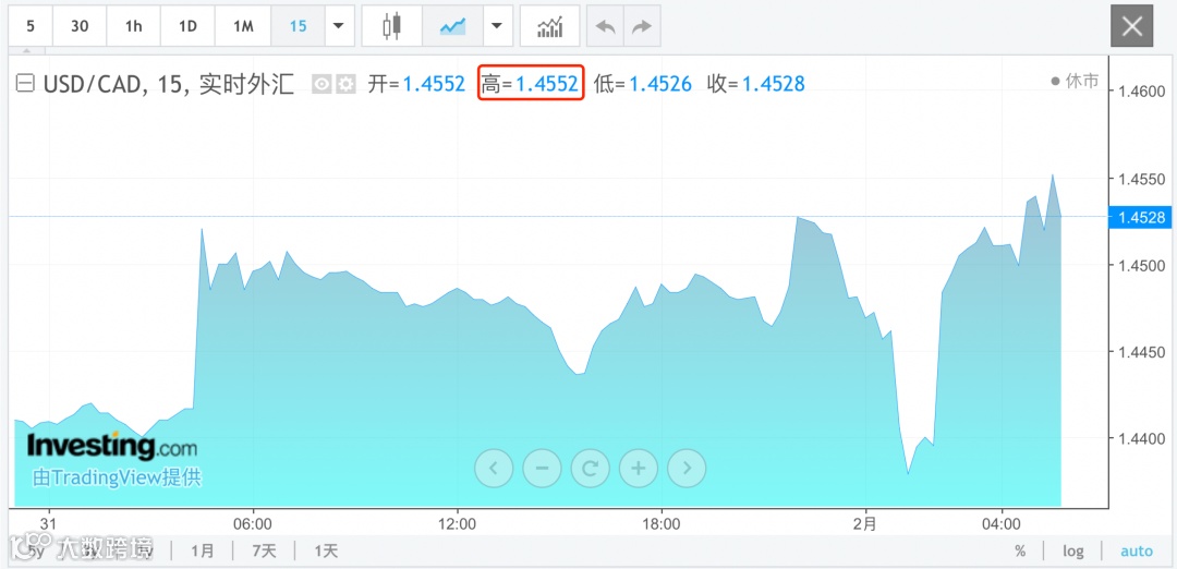 加拿大元、墨西哥比索汇率亦全线跳水,美元兑加元汇率大幅反弹,日内由跌近1%拉升转涨,日内最高报1.4552,最终收涨0.22%。