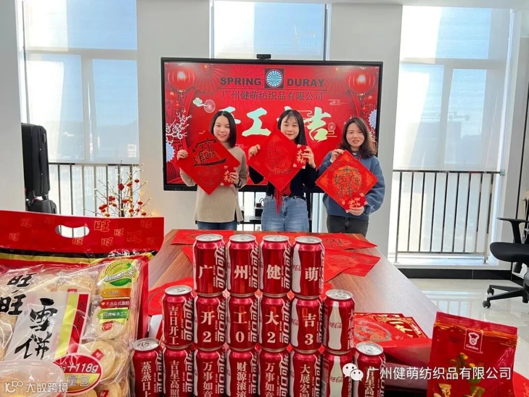 2023年开工大吉 日月开新元、天地又一春,春节的喜庆与热闹还萦绕于心,但新的征程已经开启。新起点、新开始,新的一年,广州健萌纺织迎来开工第一天,全体员工带上满身的热情再度出发,以更加扎实、饱满的工作热情,全身心地投入到工作中,为完成新一年各项工作开好头、起好步,开创各项工作新局面。 |