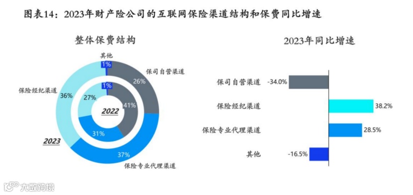 如果从渠道和保司格局来看,互联网财产险的中介渠道贡献大幅提升,市场集中度下降。