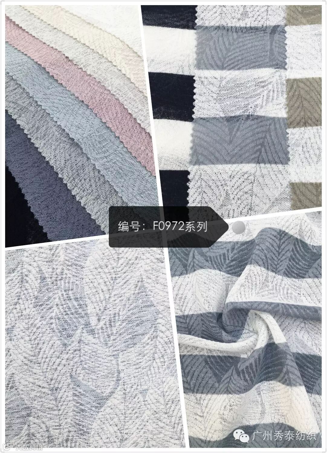 我们本季的针织提花多以素色为主,虽然没有梭织提花的华丽,但是我们更有东方女性的含蓄美,低调耐看。而且在布面效果上力求精致精细,图案采用大自然的元素毫不夸张,从而在提花上面可做二次开发,增加印花、发泡、压褶等工艺,给设计师们更多的发挥空间。