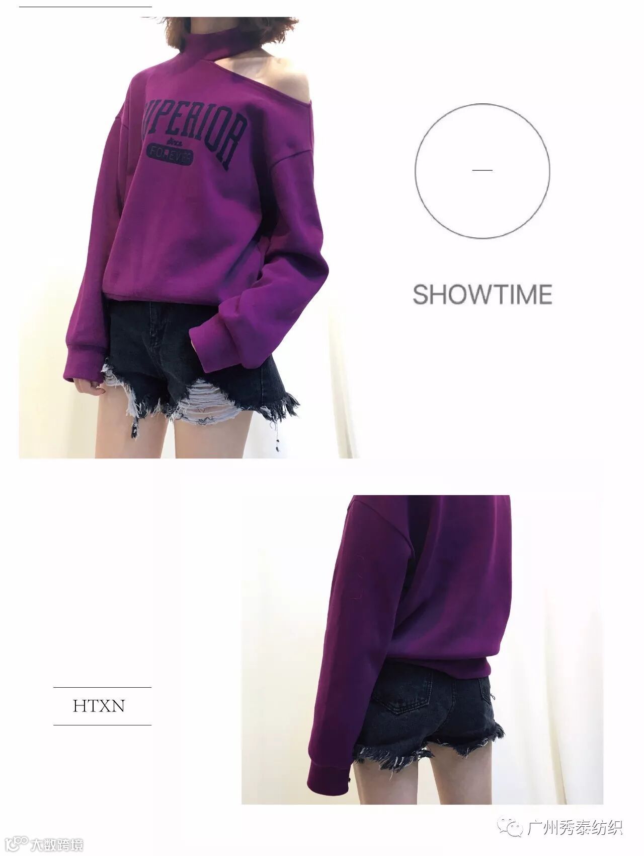 长袖露肩印花卫衣:F1585