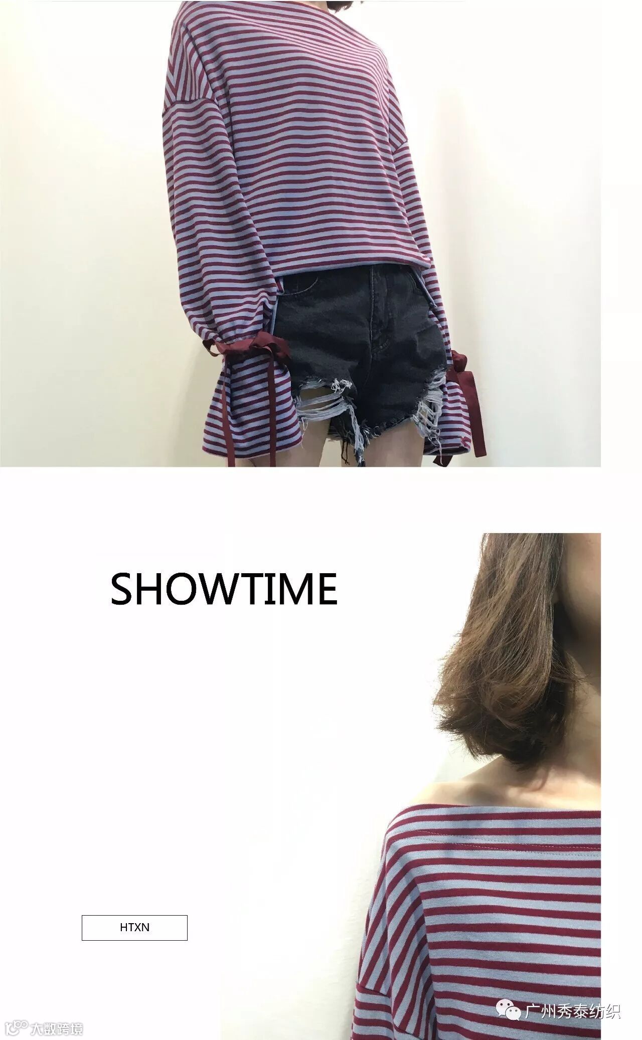 条纹长袖系带上衣:F1621