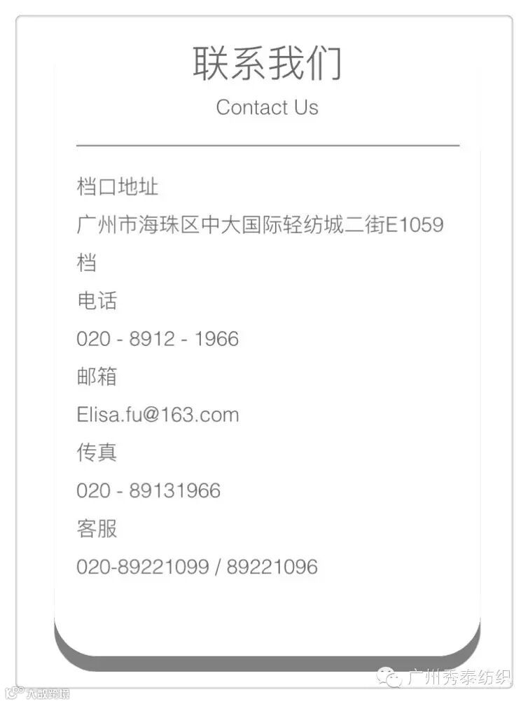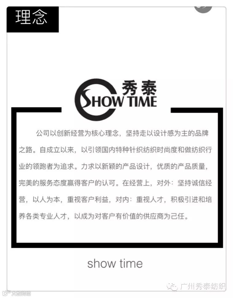 广州秀泰纺织品有限公司,成立于2012年10月。是一家主营欧韩时尚特种针织面料的专业纺织公司,成立至今一直专注于各类针织面料的开发和创新。是国内针织领域的创新开拓者和先行者。