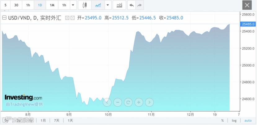 消息面上,越南央行近日宣布,将参考汇率下调至1美元兑24327越南盾的历史低点。越南盾可在参考汇率上下浮动 5%。