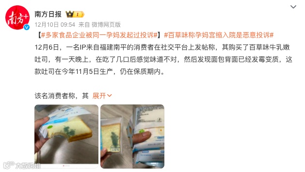 “孕妇吃到发霉百草味面包宫缩入院”