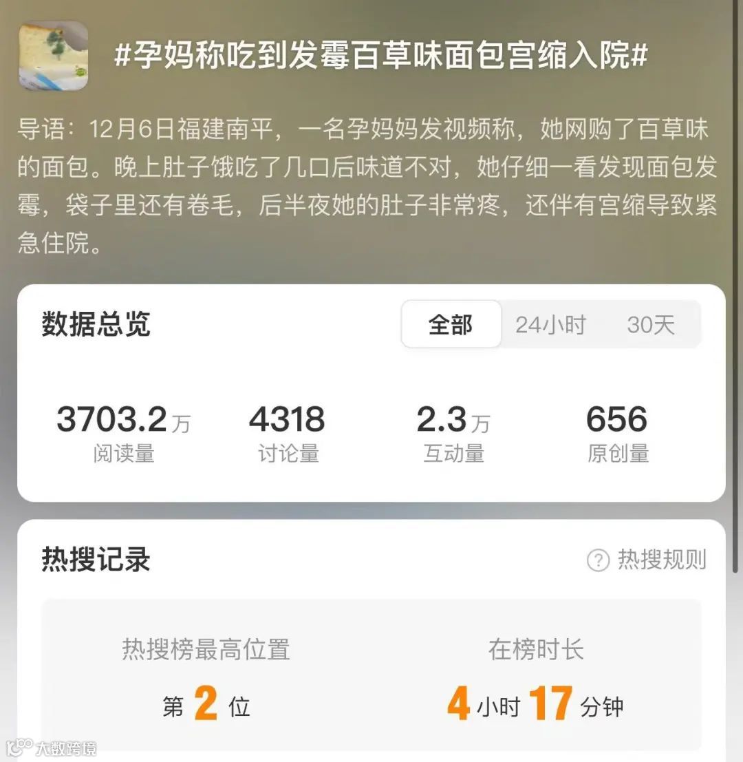这一事件,旋即引发网友关注。相关话题#孕妈称吃到发霉百草味面包宫缩入院#,曾冲上微博热搜榜第二位。