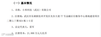 股权受让之时,小米科技注册地在武汉,注册资金2.1亿元,雷军为法人代表。同时,雷军也是该公司的执行董事、总经理。雷军的入股目的是,是基于对上市公司经营理念、发展战略的认同及对上市公司未来发展前景看好,从而进行的战略投资。