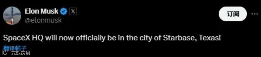 马斯克将SpaceX的总部从加利福尼亚州迁移至得克萨斯州,而星际基地建市很可能也是总部搬迁计划中的一环。
