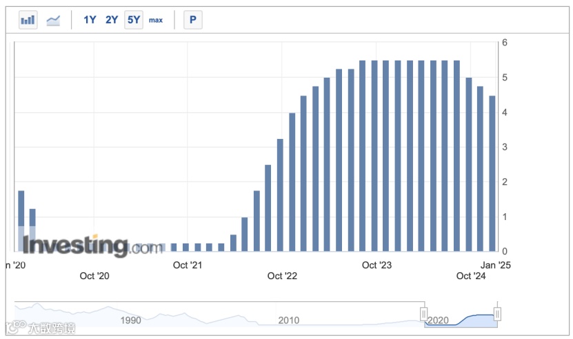 北京时间12月19日凌晨3点,美联储宣布,决定将基准利率下调25个基点,联邦基金利率的目标区间从4.5%至4.75%下调至4.25%至4.50%,符合市场预期。