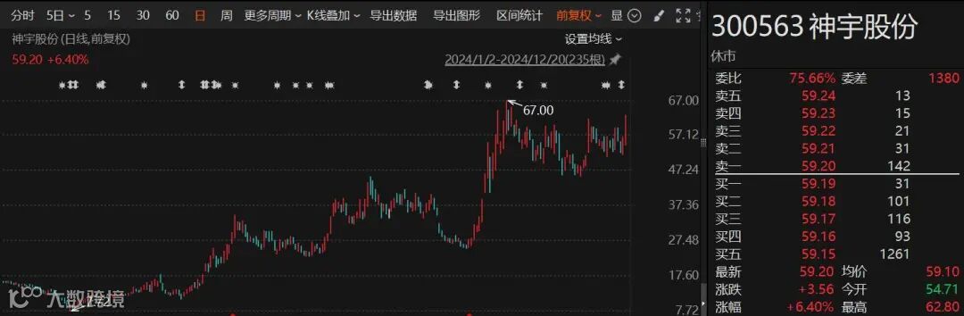 芯片股继续走强,板块指数周线4连阳。细分铜缆高速连接概念领涨,板块指数全周放量大涨11.5%,接连创历史新高,成交量也急剧放大,不论日成交还是周成交都刷新历史纪录。板块内大牛股频出,截至12月20日收盘,神宇股份年内涨幅高达276%,沃尔核材年内涨幅也高达238%,精达股份、太辰光、鑫科材料等自低点起来,涨幅也均超1倍。