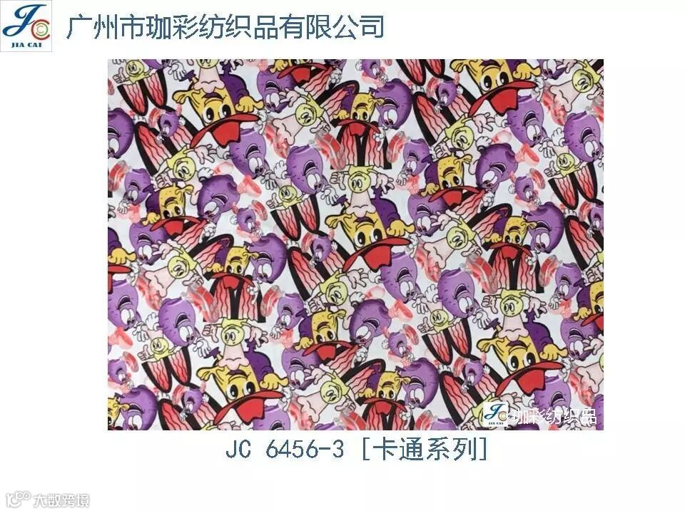 导读:珈彩纺织品本公司是一家数码、转移印花专业制造商。公司致力于花型图案的设计与开发,以质量、服务、价值为核心;拥有上万个紧跟潮流花样的品种,实力和产品质量在行业中获得较高口碑。珈彩人的努力永不停歇,为您提