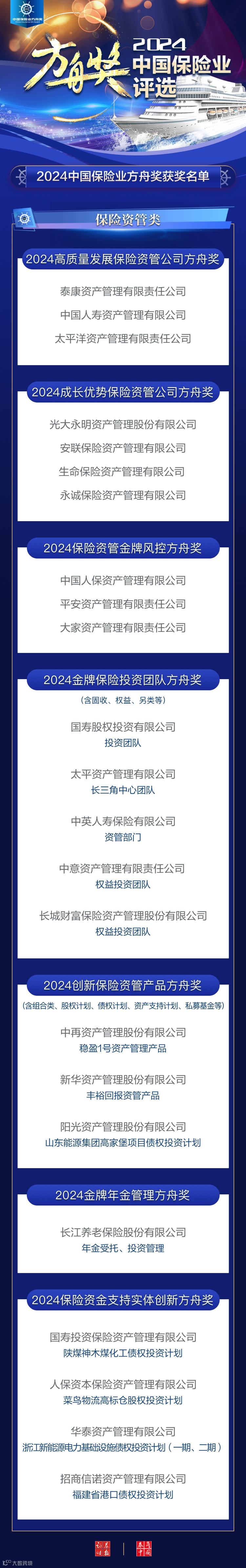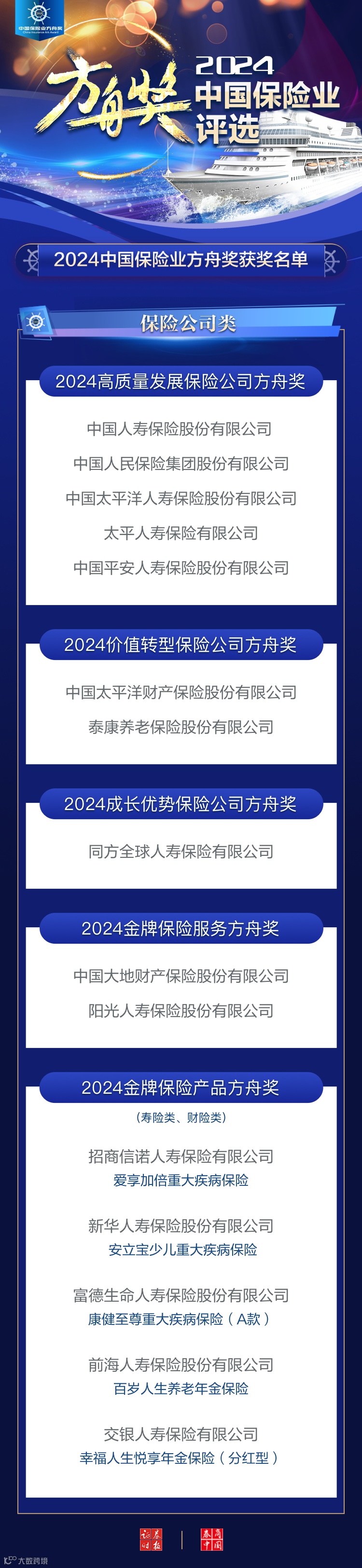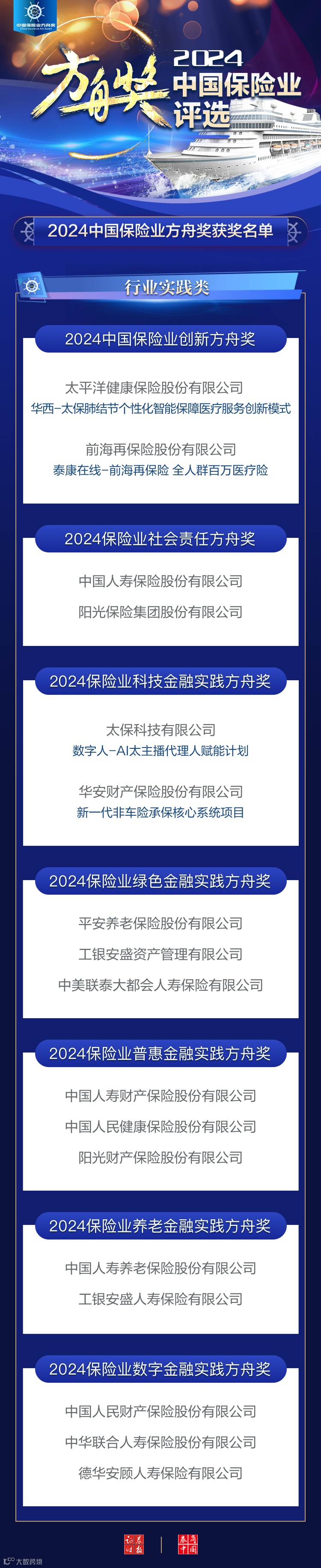 “2024中国保险业方舟奖”评选结果正式揭晓。