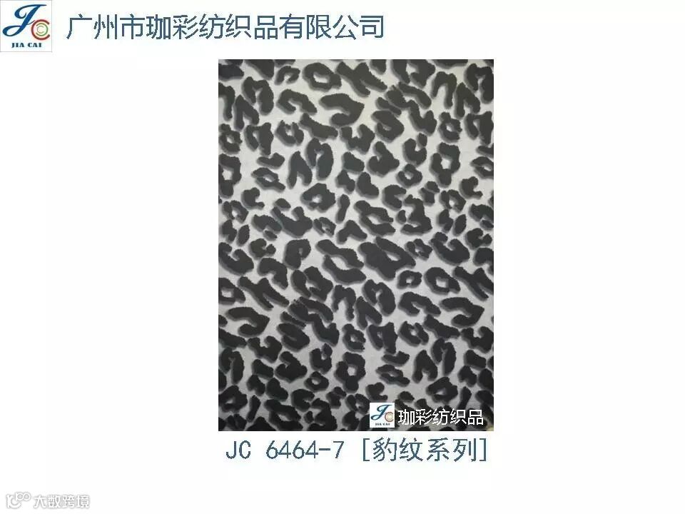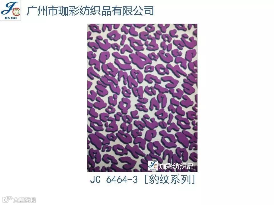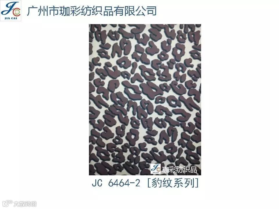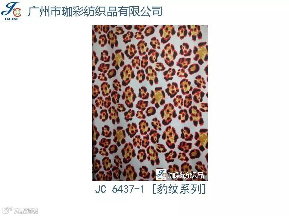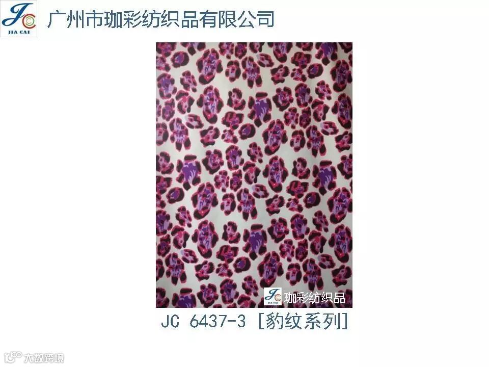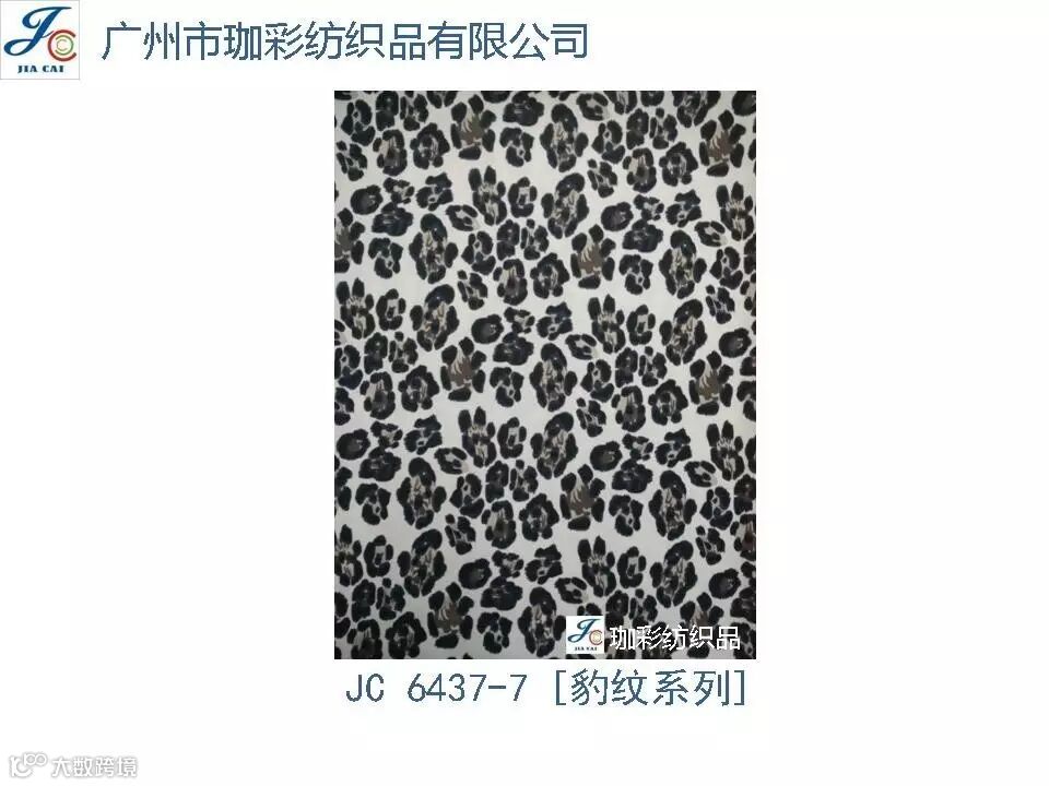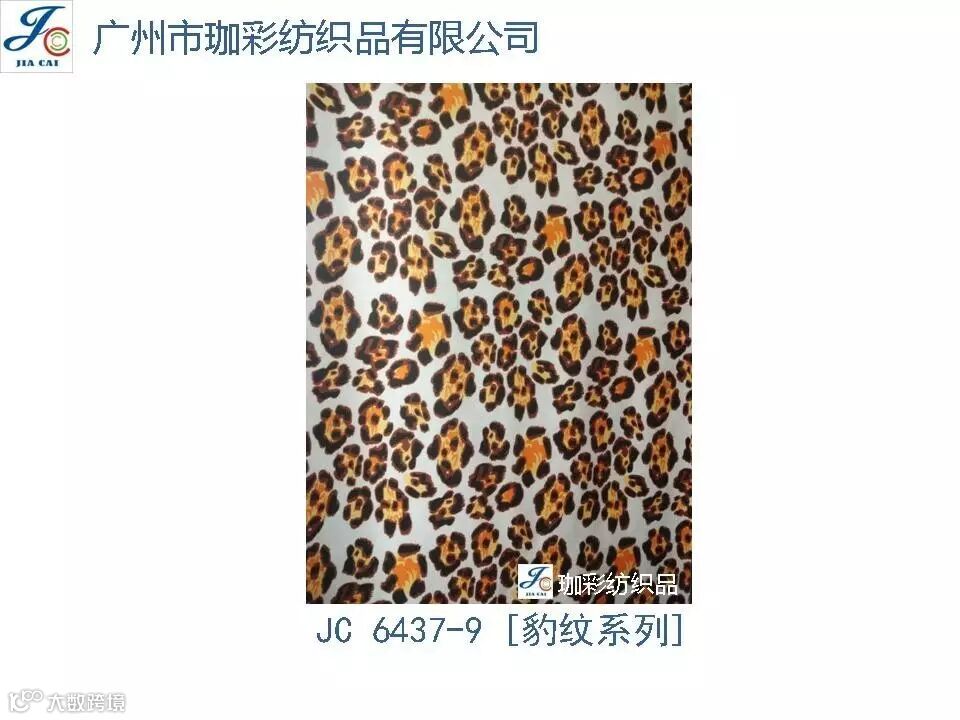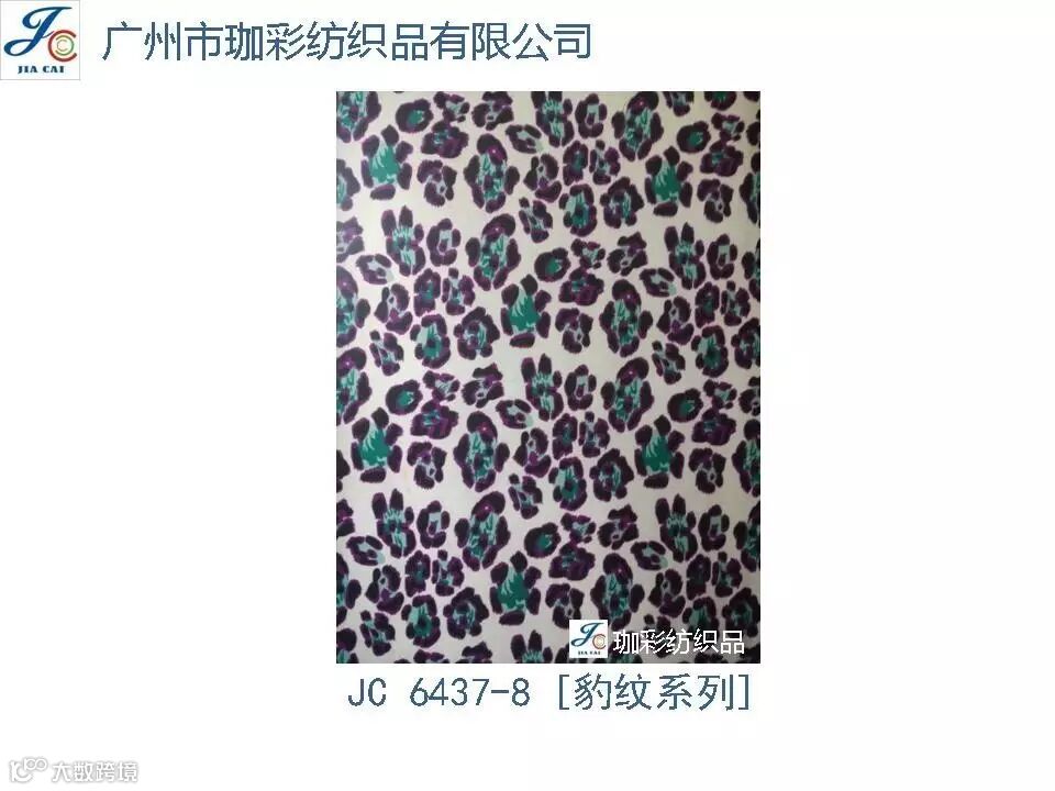 导读:珈彩纺织品本公司是一家数码、转移印花专业制造商。公司致力于花型图案的设计与开发,以质量、服务、价值为核心;拥有上万个紧跟潮流花样的品种,实力和产品质量在行业中获得较高口碑。珈彩人的努力永不停歇,为您提