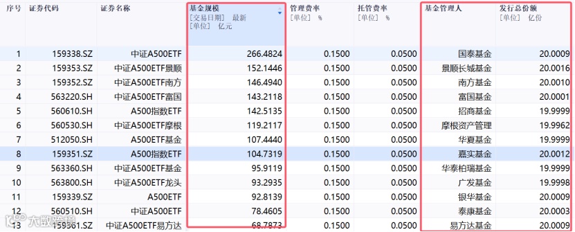 二是10月中旬到11月中旬,大成基金、华安基金、万家基金等公募旗下的中证A500超过基金陆续成立,其中有不少是中证A500普通指数基金,以及个别的指数基金。