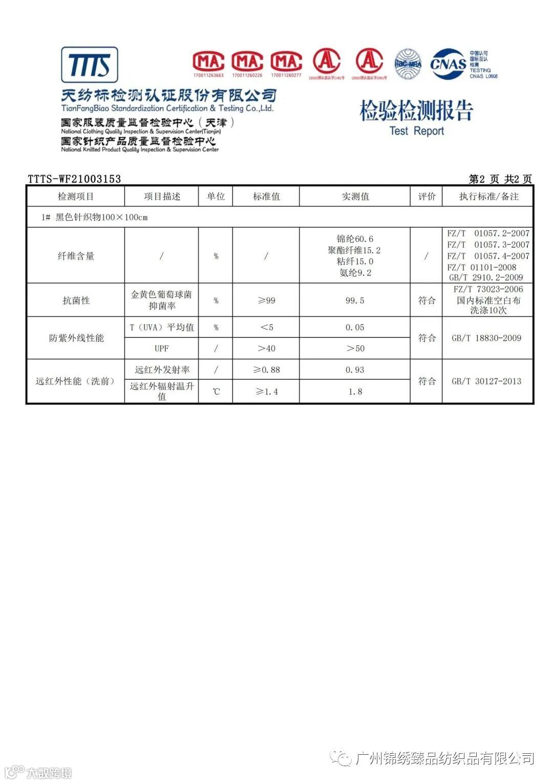碳纤维纺织品会吸收太阳能转化为热能,产生远红外发射,此产品远红外发热率检测为(0.93微米)升温值温度在1.8℃,符合30127-2013纺织品远经外性能的检测标准。