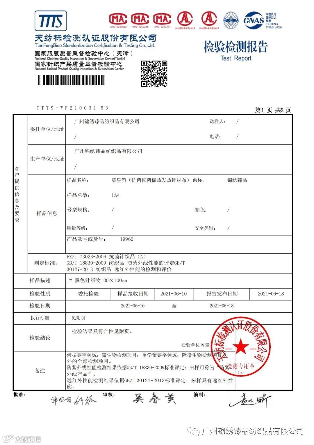此系列采用生物碳制成纳米级颗粒和聚酯纤维纺丝制纤而成,此纤维制品在和其他纤维交织成面料,此面料做成的成衣可以产生远红外升温,远红外是用肉眼看不到的一种对人体有益的辐射光纤,现多用于医学,如远红外帮助伤口愈合,远红外测温等!此四面弹面料现用的热熔岩也是利用生物炭的辐射来增加人体体表温度1.5℃-2℃,有功能性吊牌,有检测报告。