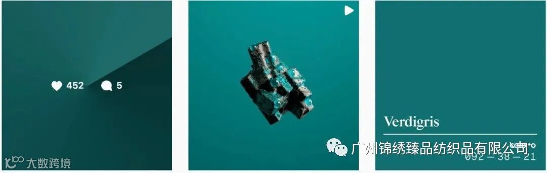 铜绿是从氧化的铜提取出来,色调在蓝与绿之间,让人想起80年代的运动服装和户外装备,而可以理解成进取和年轻动力。