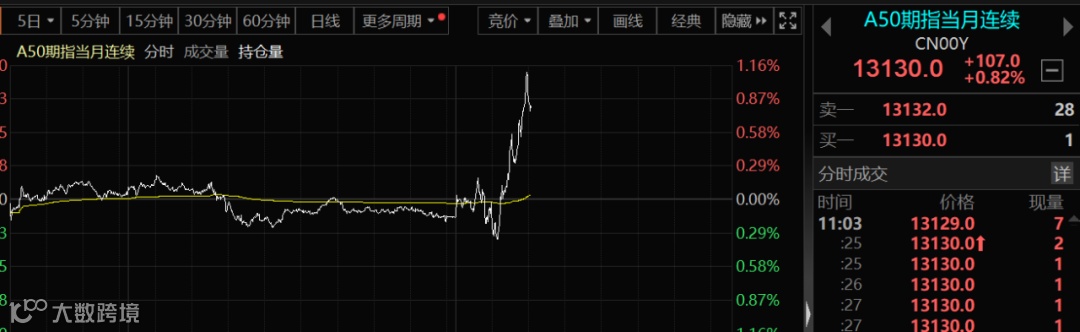 今天,亚太市场依然表现乏力,但A股和港股的走势依然较强。A50在早盘小幅下挫之后,快速拉起。MSCI中国A50互联互通指数期货、富时中国A50指数期货一度均涨超1%。