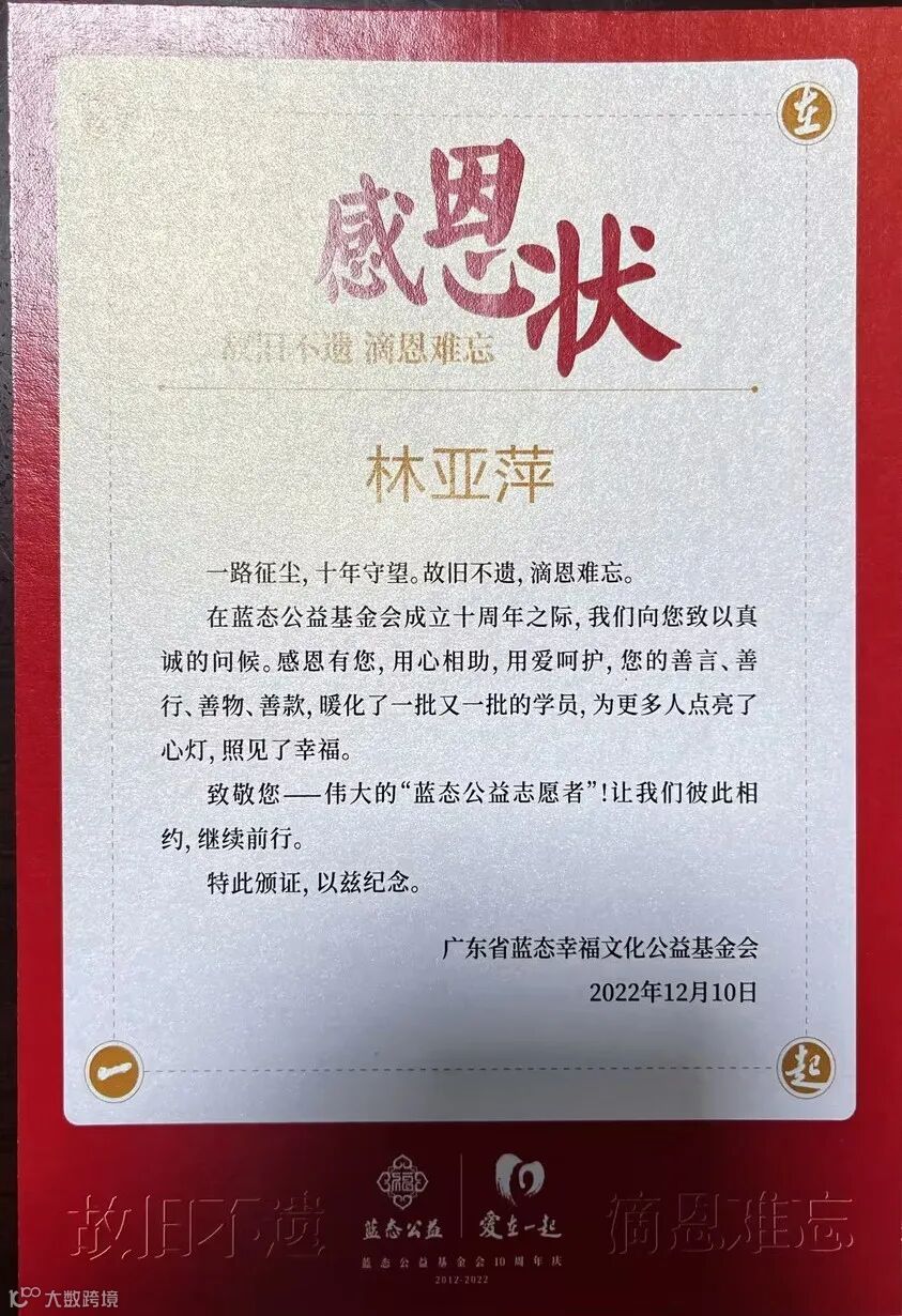 最后,感慨地说,积善行、思利他是她一直坚持的信念。她表示,只有通过不断反思、自省和努力,才能不断推动公司和企业文化的进步与发展,同时也能更好地回馈社会,为更多的人带来幸福。