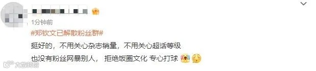 11月16日,微博话题#郑钦文已解散粉丝群#冲上热搜第一。