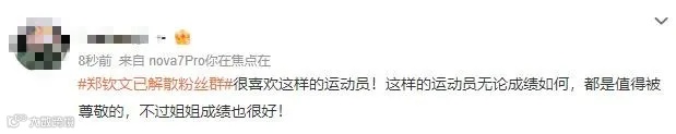 11月15日,有网友反映@郑钦文Ana 解散了关联到她主页的微博粉丝群,部分粉丝对此表示支持郑钦文专注于训练,在赛场上见。