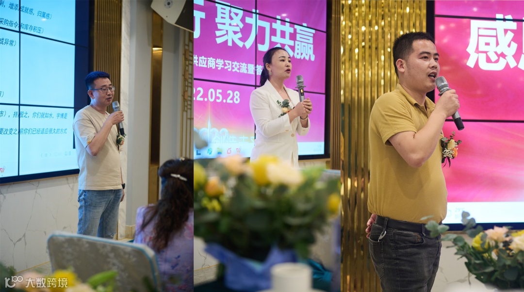 ▲ 交流会现场邀请了三位合作伙伴上台分享,他们分别是:舜业、洪兴、诚慧。他们分享了与宇博一路共同成长的历程,纷纷表示感受到宇博对供应商的尊重与诚意,愿一路同行,高歌猛进。