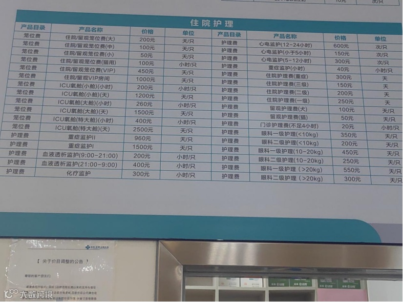 券商中国记者在某宠物医院看到,住院/留观VIP病房最高报价1000元,ICU氧舱达到2500元每天/只。“深圳就是这个价格,有条件还是把保险买了。”王女士向记者表示,自己在某线上平台给自己的爱宠购买了一款保险,每个月30多元,最近一次肠胃炎花费了2305元,报销了1414.70元。
