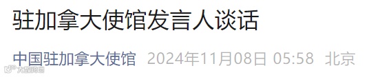 加拿大议会公然对台湾问题说三道四、恶意曲解联合国大会第2758号决议,中国驻加拿大使馆驳斥!