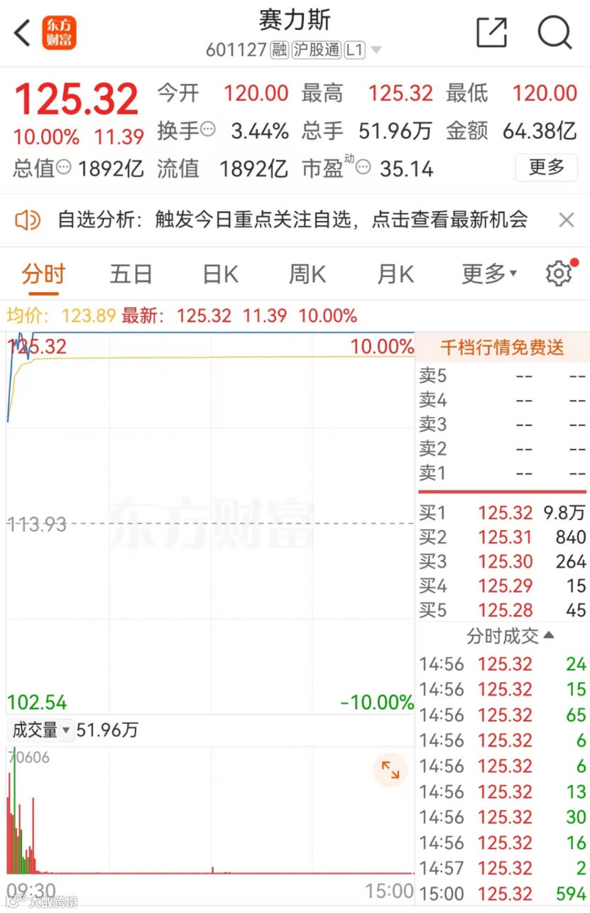 上周末,一条关于赛力斯布局机器人领域的消息持续发酵。11月4日,作为新能源车叠加人形机器人概念,赛力斯直接封涨停,股价更是创下历史新高,收报125.32元/股,总市值达到1892亿元。