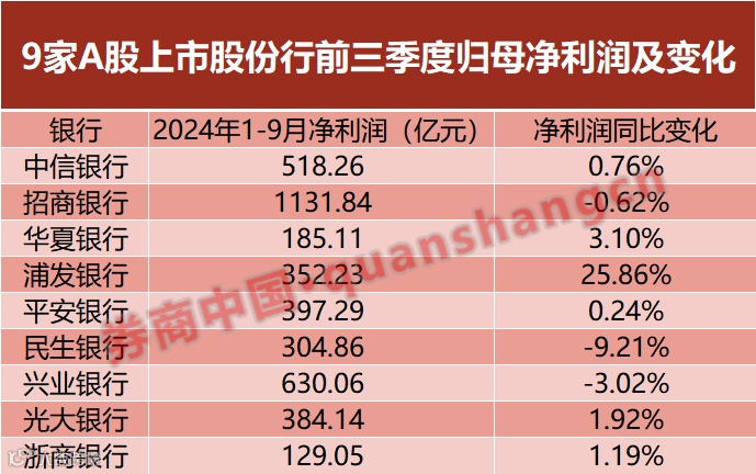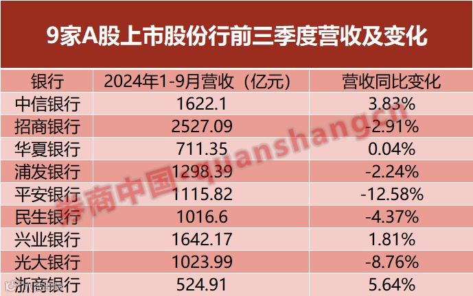 今年前3个季度,尽管股份行零售业务承压、息差持续下行,但从经营业绩来看,9家A股上市银行营业收入或净利润仍有不少积极因素。