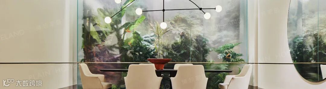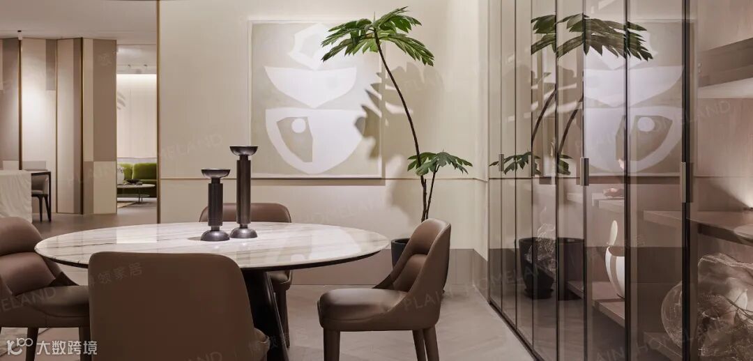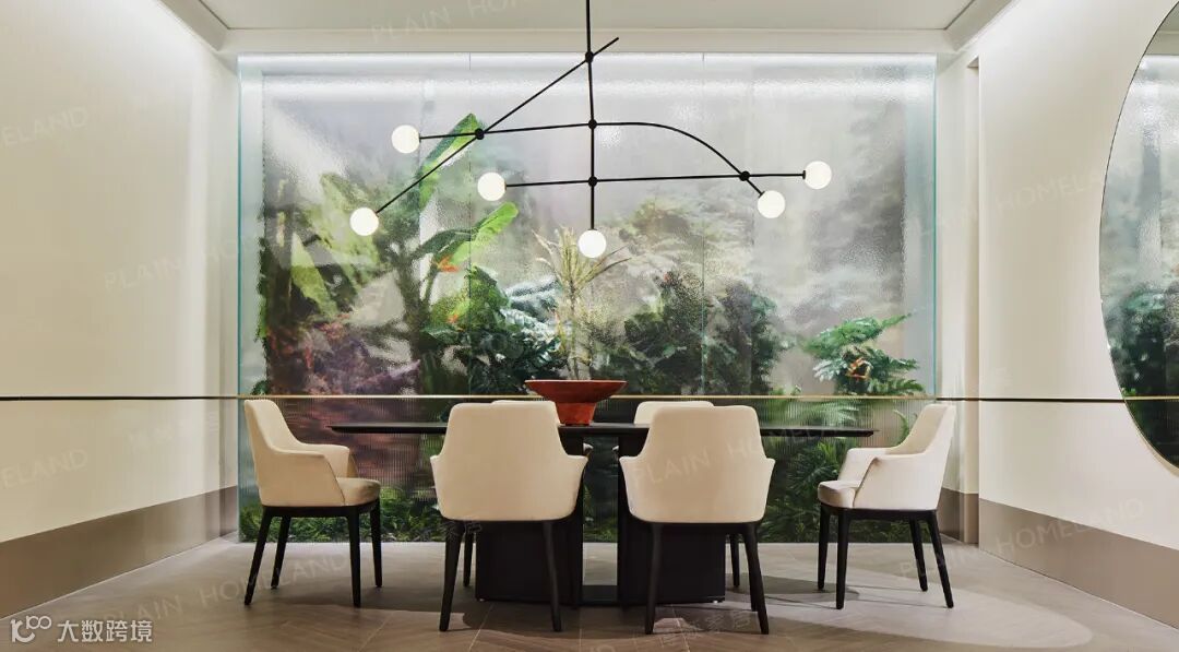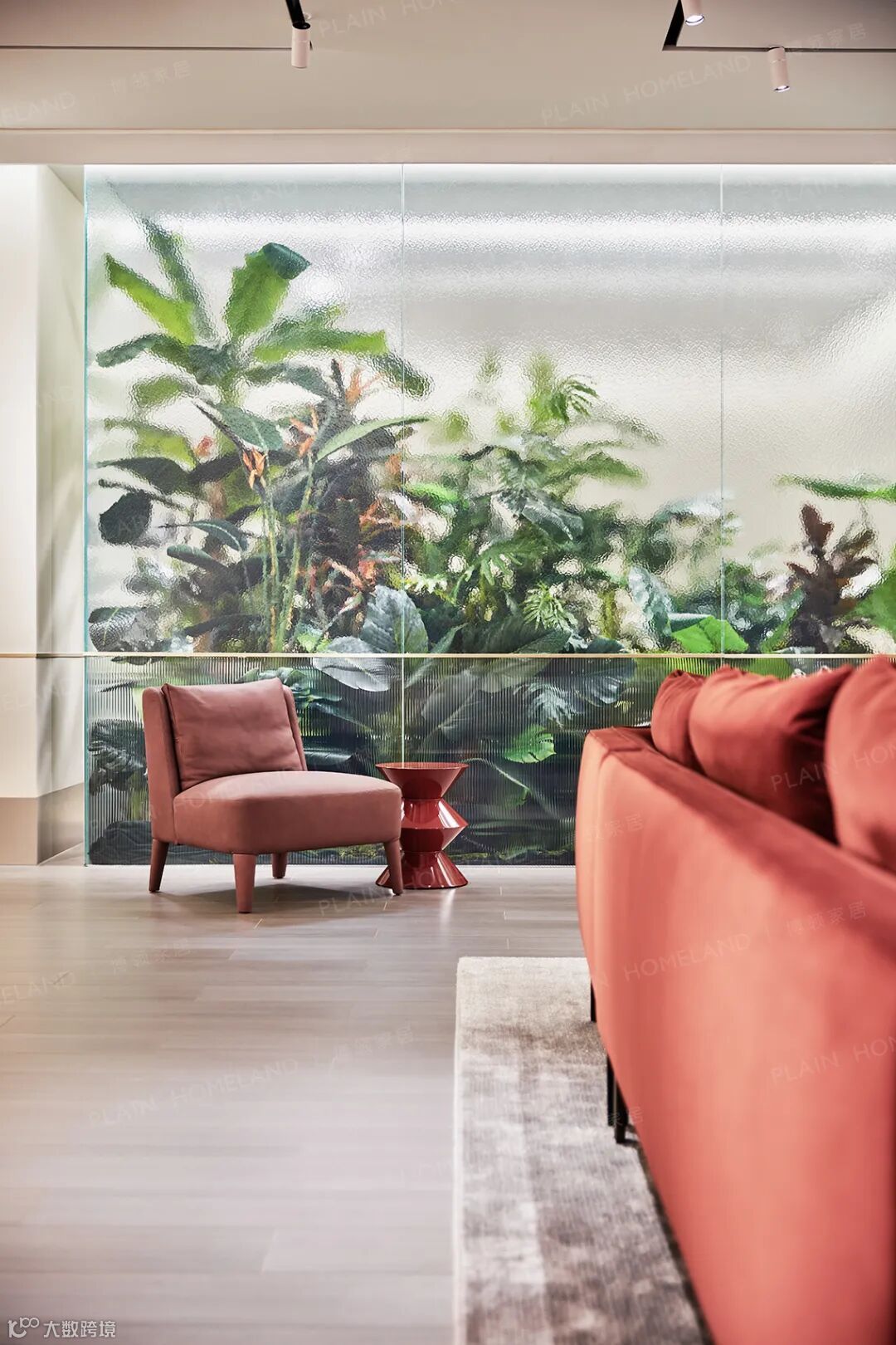 玻璃盒即是空间的隔断也是空间的视觉中心,赋予空间延伸感的同时,在抽象与具象之中凝练出现代生活与自然造物交织的情感,传递给人轻松纯净的心里感受。