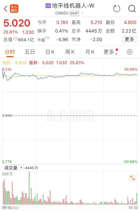 10月23日,地平线机器人的股价在香港暗盘交易中大幅上涨,一度触及5.21港元/股,相比公司IPO定价3.99港元/股上涨超30%。截至收盘,回落至5.02港元/股,涨幅仍达到25.81%。