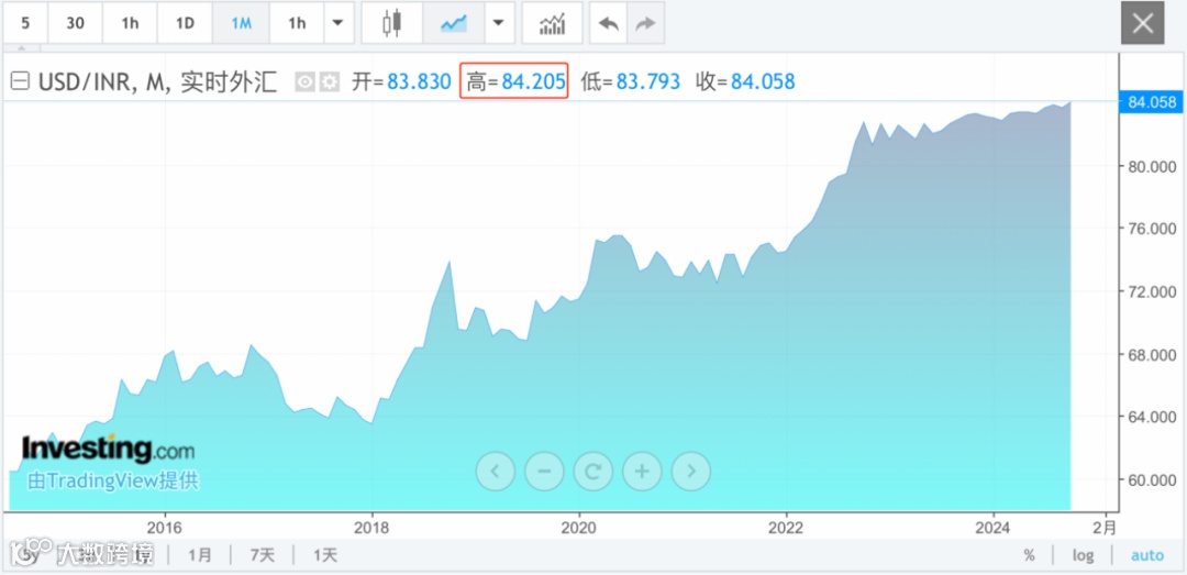 10月14日,美元兑印度卢比汇率一度升至84.205,创历史新高。