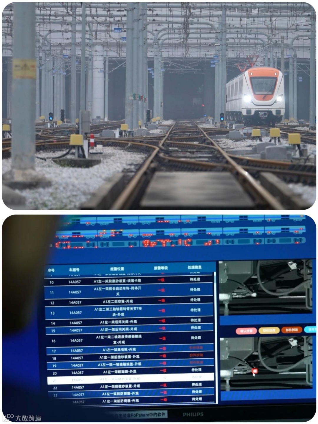 李兆新说:“以前检修35列车可能要12个小时,检修时,一晚上要步行一万五到两万步。如今,列车360检测棚可以针对列车外观进行检查,通过17台相机拍照,精确捕捉15000多个关键部件的状态。哪怕一颗螺丝松动,都能立刻察觉。这套系统已经能够实现99.7%的检测精度,已然超越了最为老到的高级工。”