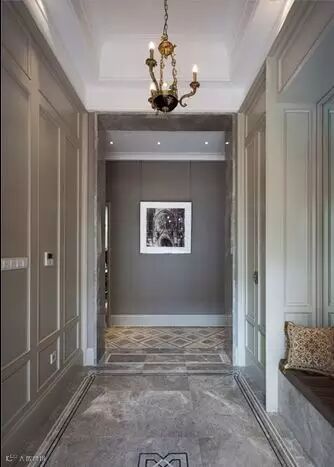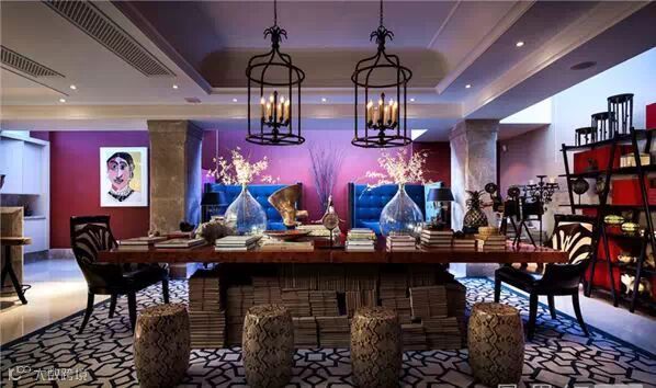 地下一层是家庭活动区,承担阅读和收藏功能,拜占庭艺术被融入到饰品,挂画、家具细节等各处,通过各种样式的组合搭配,形成强烈的视觉符号转换到空间中,形成接近生活又明显高于生活的气质。
