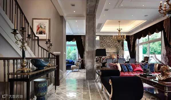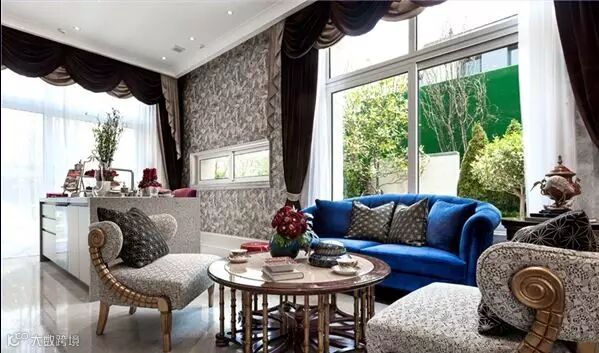 客厅,设计师将古典风格和现代款式的家具结合使用,让空间中活跃着拜占庭的点点精粹,却又不是那么浓烈厚重。