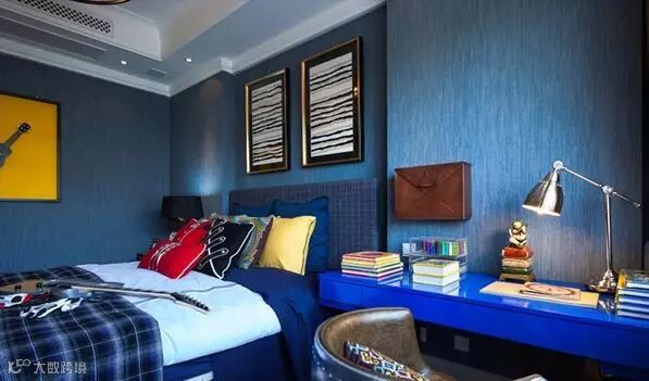 男孩房用大量重复的物件,形成空间的情景化,呼应了男孩热爱音乐的特质。