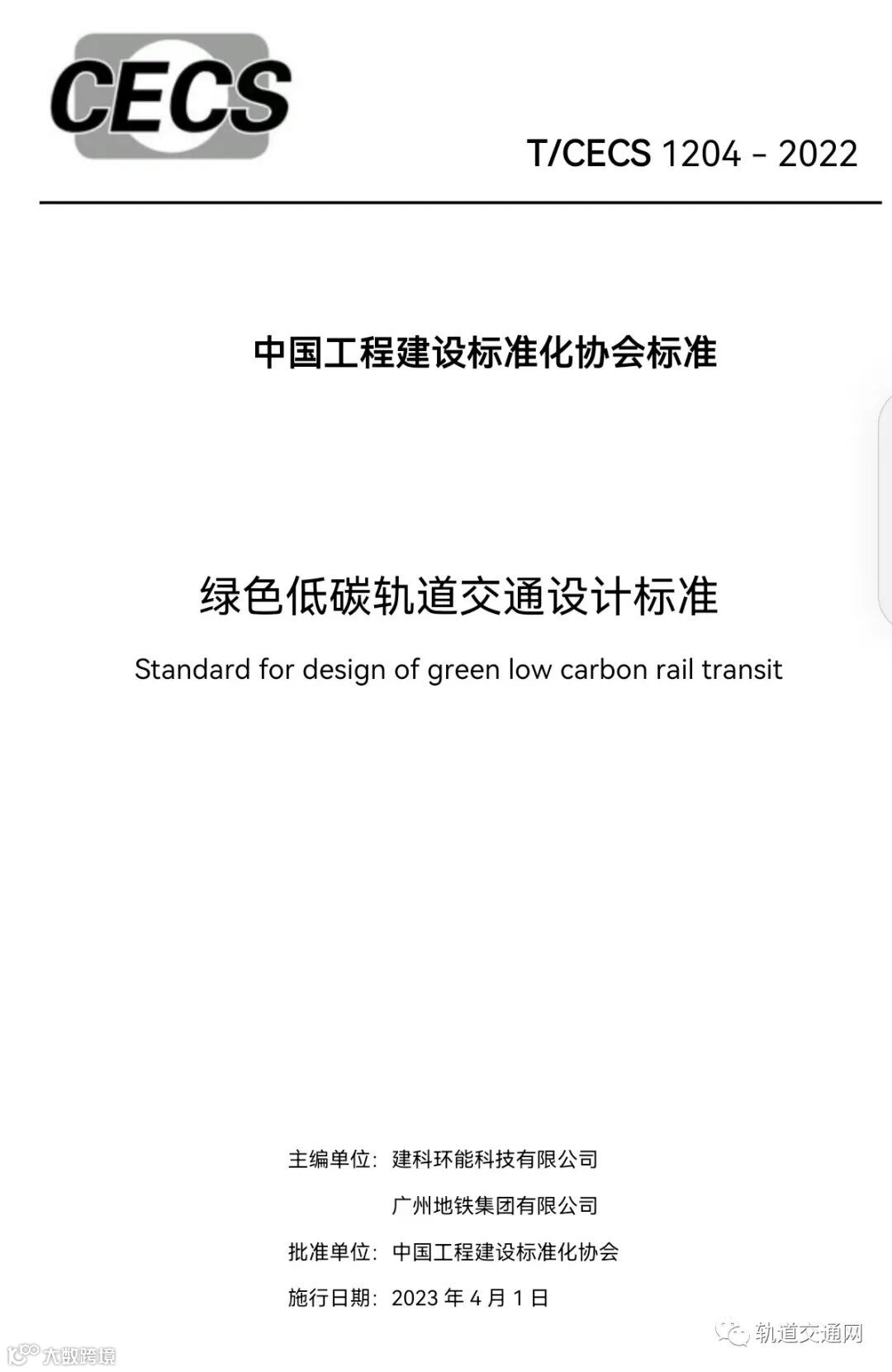 近日,由广州地铁集团有限公司和建科环能科技有限公司联合主编的中国工程建设标准化协会CECS标准《绿色低碳轨道交通设计标准》(编号:T/CECS 1204-2022)和《绿色低碳轨道交通评价标准》(编号:T/CECS 1236-2023)正式公开发布,填补了轨道交通行业在绿色低碳设计与评价标准领域的空白!